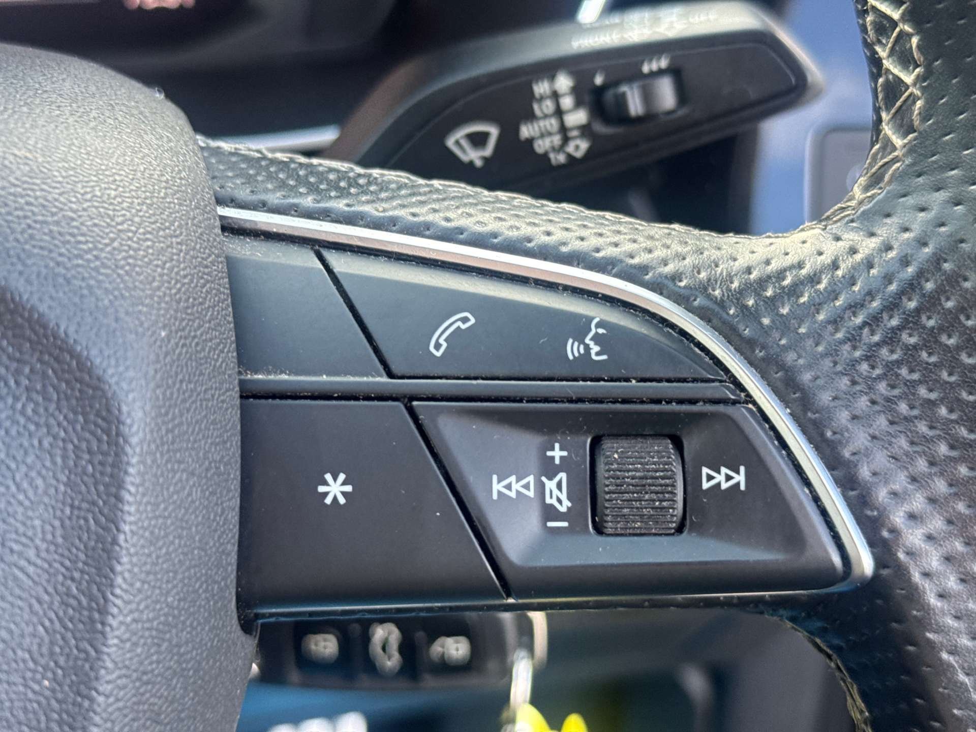 - 3-Spoke Leather Multi-Function Steering Wheel - S Badging and Grips in Perforated Leather with Contrast Stitching