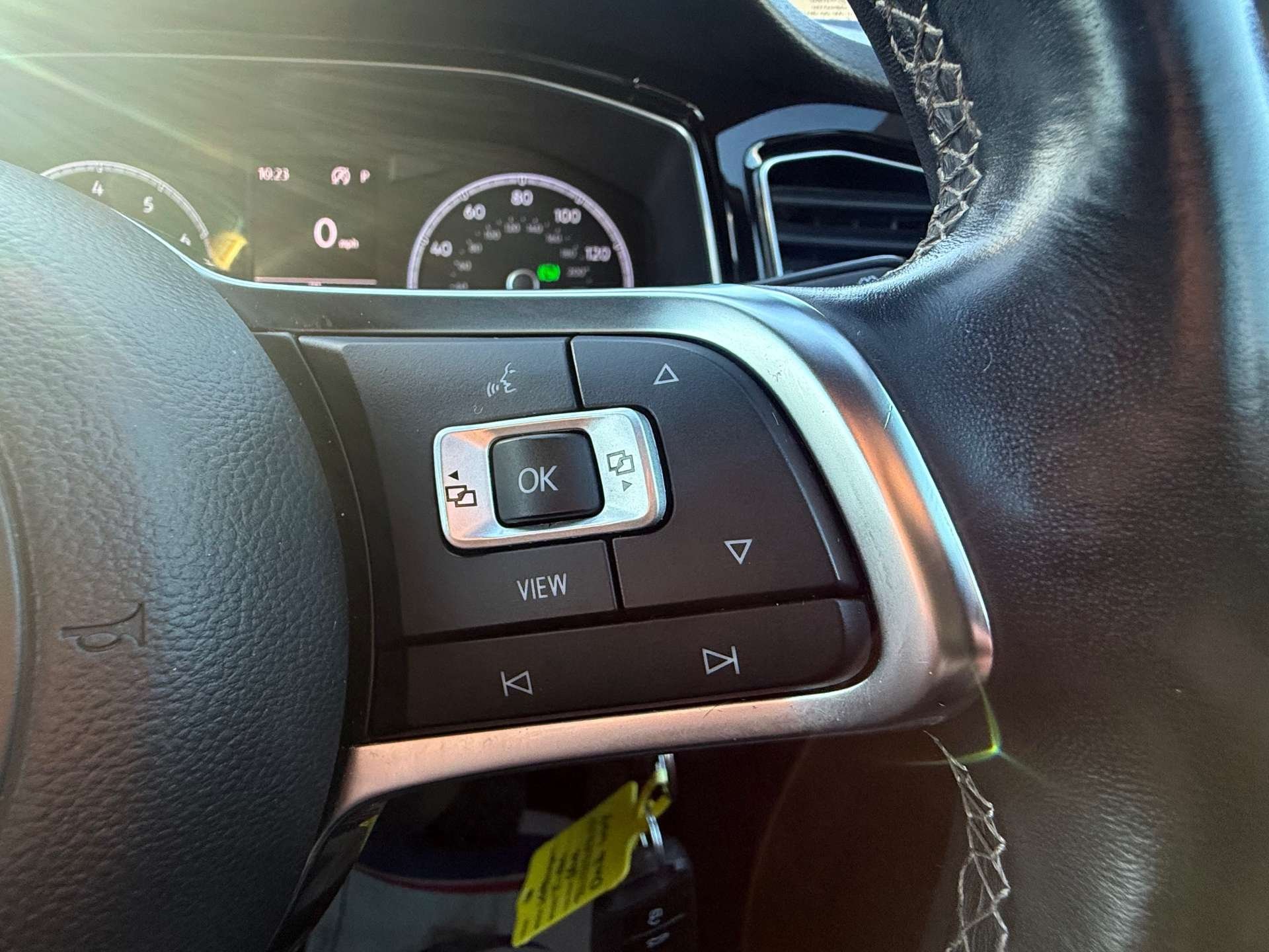 - Leather Trimmed Three-Spoke Multifunction Steering Wheel with Grey Contrast Stitching